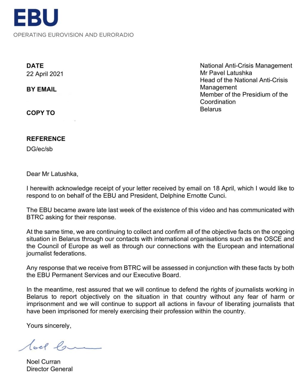 Европейский вещательный союз также заявил, что ситуация в Беларуси должна освещаться объективно, а журналисты не должны опасаться причинения вреда или тюремного заключения за то, что занимались своей профессиональной работой.