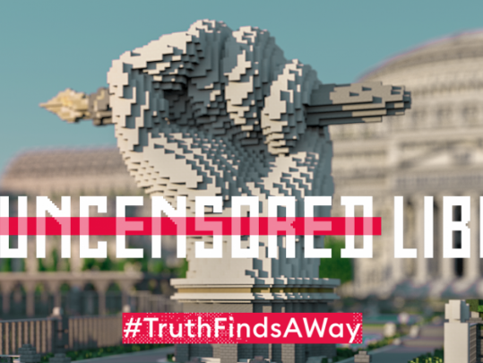 Международная организация «Репортеры без границ» построила в игре Minecraft онлайн-библиотеку. В ней хранятся подцензурные журналистские тексты со всего мира. В здании есть секции, каждая из которых посвящена одной стране.