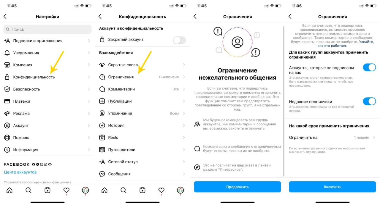 Теперь пользователи, которые считают, что подвергаются массовому преследованию в соцсетях, могут включить ограничения в новом разделе. Функции по блокировке и ограничению уже и до этого были в Instagram, но с помощью них можно было блокировать только определённых людей.