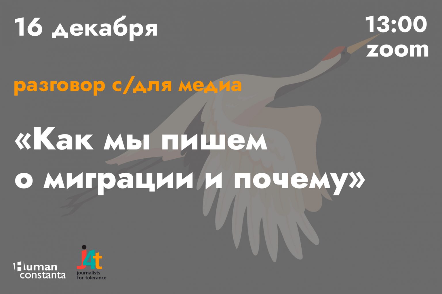 К Международному дню мигрант_ки правозащитная команда Human Constanta и Журналисты за толерантность приглашают на разговор с/для медиа о том, какие трудности вызывала миграционная тематика и как с ними можно справляться.