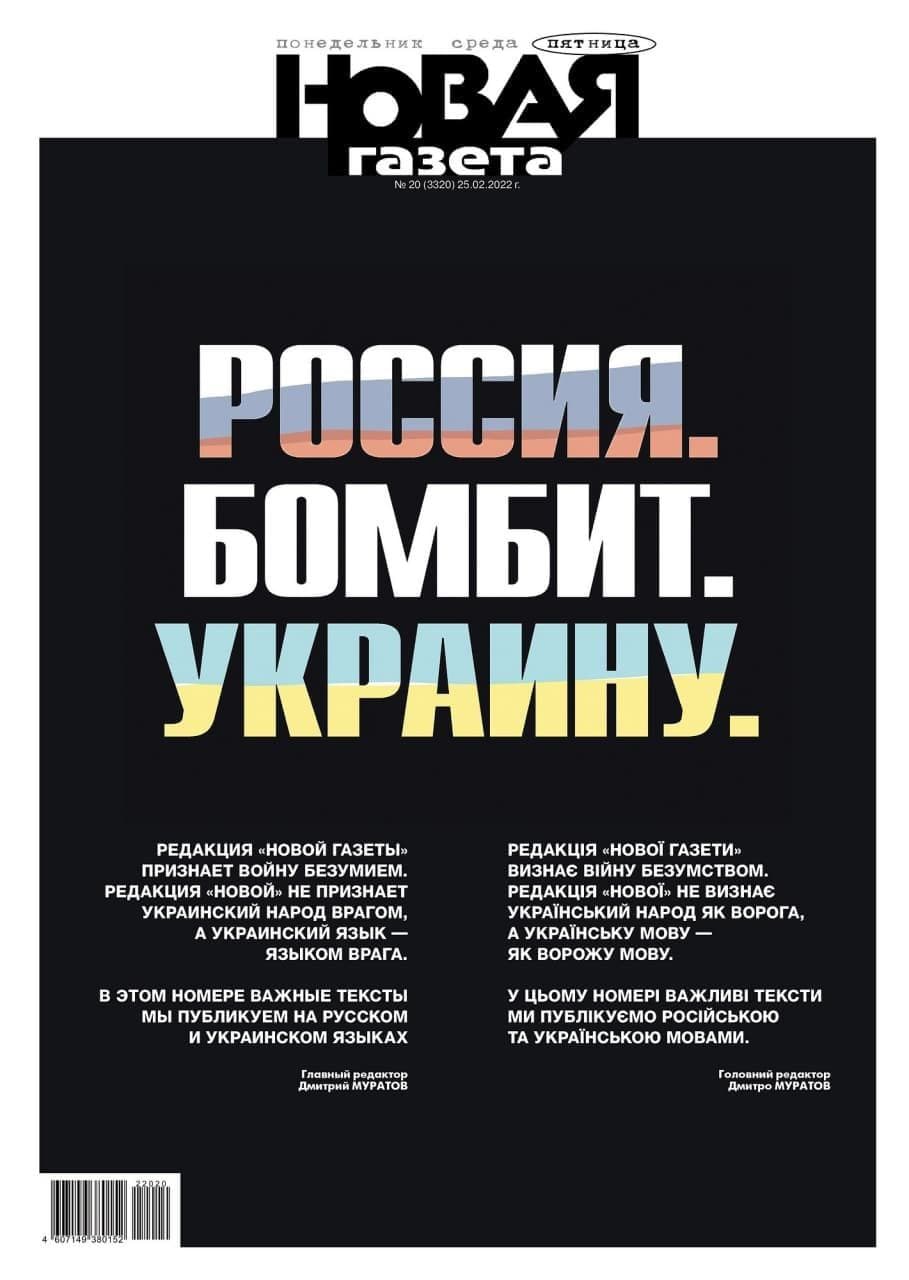 Накануне главред издания Дмитрий Муратов заявил, что война в Украине - позор для России. И анонсировал новый выпуск издания на двух языках.