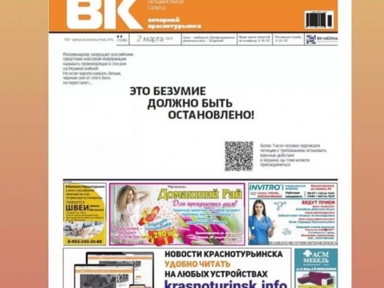 В холдинг «ВК-медиа» из-за газет с антивоенной обложкой пришла полиция. По данным Znak.com, тираж изымают.