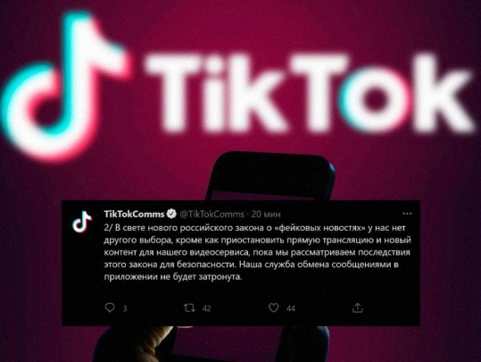 TikTok прекратил работу в России из-за закона о «фейках» в период «спецоперации». Недоступны стримы и загрузка нового контента.
