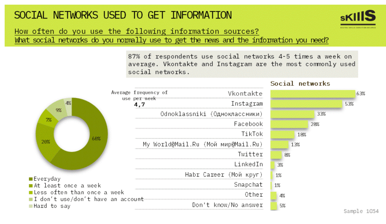Скриншот из исследования «Media consumption and media literacy in Belarus in August 2021» , проведенного Digital Skills Coalition Belarus. Данные августа 2021 года.