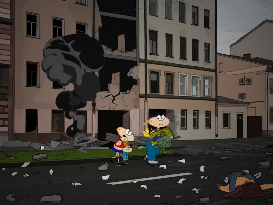 Автор мультфильма также рассказал про отсылки в последнем эпизоде. Так, сцена с ребенком, ведущим дневник в подвале, — это отсылка к советской школьнице Тане Савичевой, которая вела дневник в блокадном Ленинграде, а также к мариупольскому мальчику, который писал заметки во время осады украинского города (СМИ сообщали, что этот ребенок — родственник фотографа и актера Евгения Сосновского, который рассказал его историю журналистам).