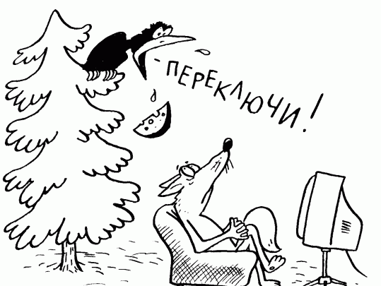Нам навязали модель ТВ, государственного по содержанию и коммерческого по форме (и такому же безмозглому содержанию).Однако, находясь у телевизора, человек не остается пассивным потребителем, а активно действует пультом дистанционного управления.