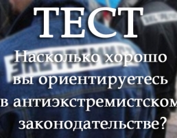 В этом тесте тестируем свои знания знаконодательства в области противодействия экстремизму. Рассматриваем как действующие положения, так и планируемые в скором времени нововведения